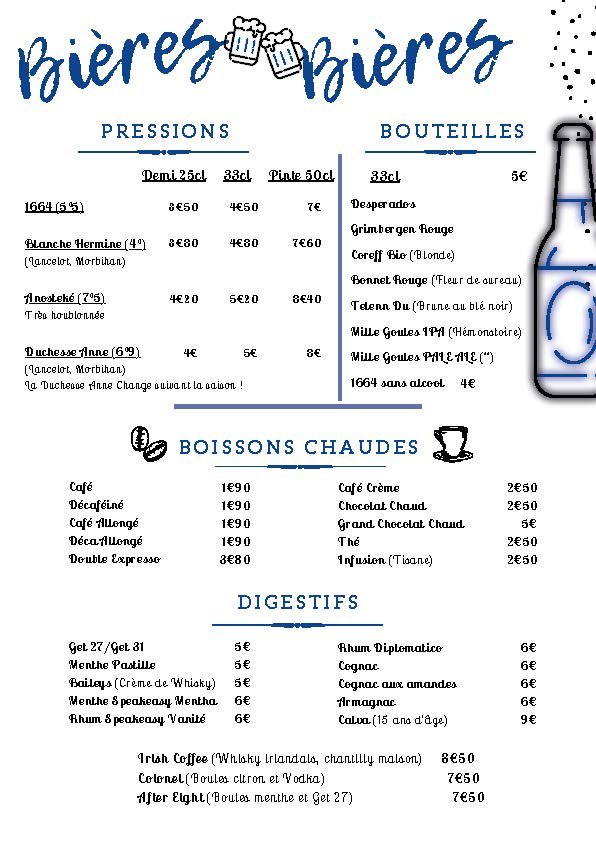 Découvrez ci-dessus notre carte actuellement disponible au restaurant. Déjeuner à l’une de nos tables vous assure une cuisine fait maison ainsi que des produits frais et de saison.